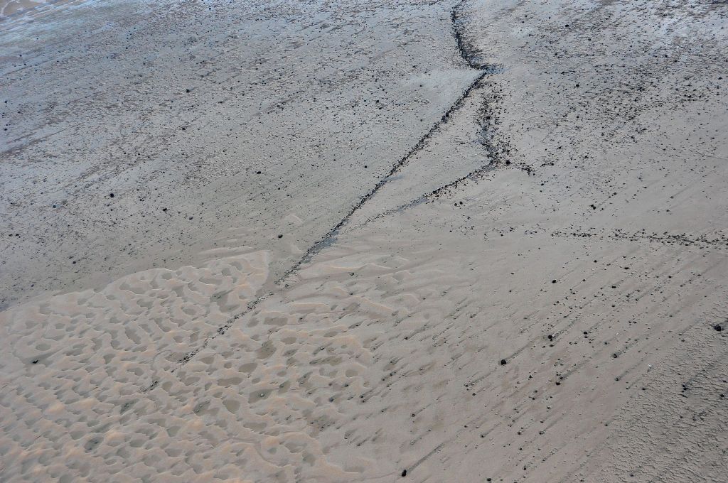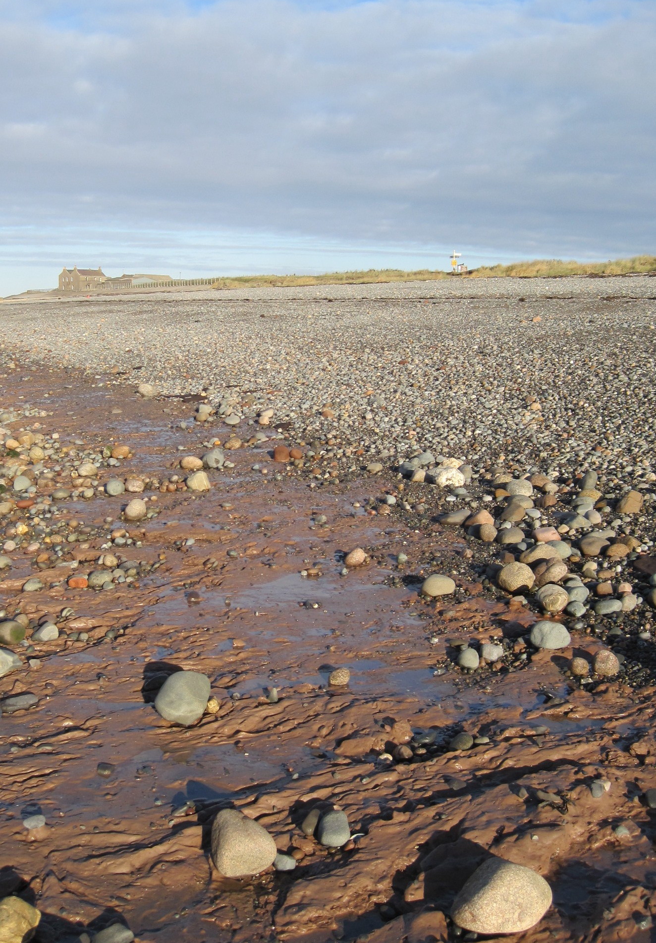 Recent storms have uncovered several patches of that same clay, perhaps derived from finely-ground red sandstone, with a texture that is markedly different from the smooth, grey, heart-stoppingly slippery clay that is occasionally exposed beneath the peat deposits on the shore.