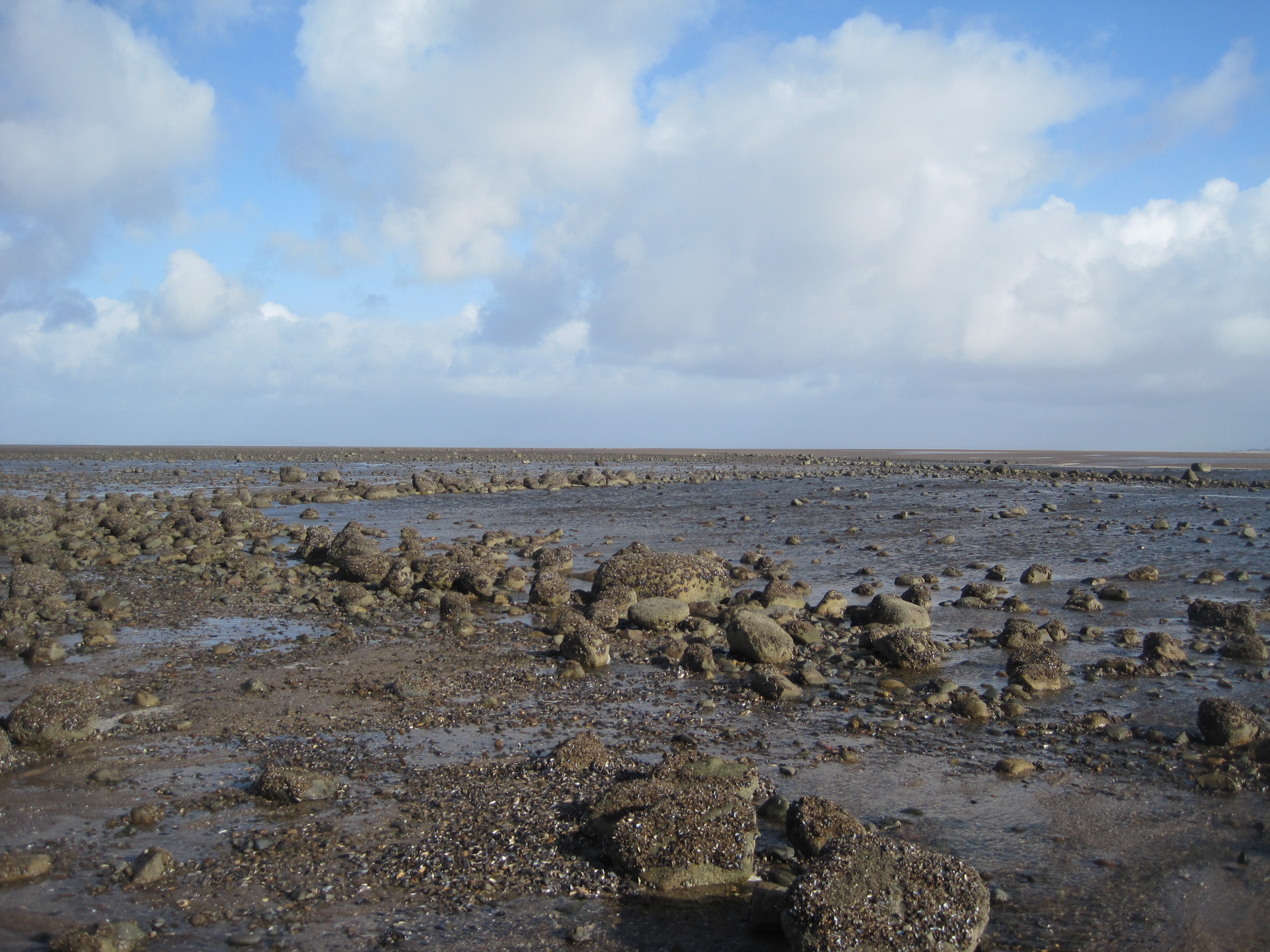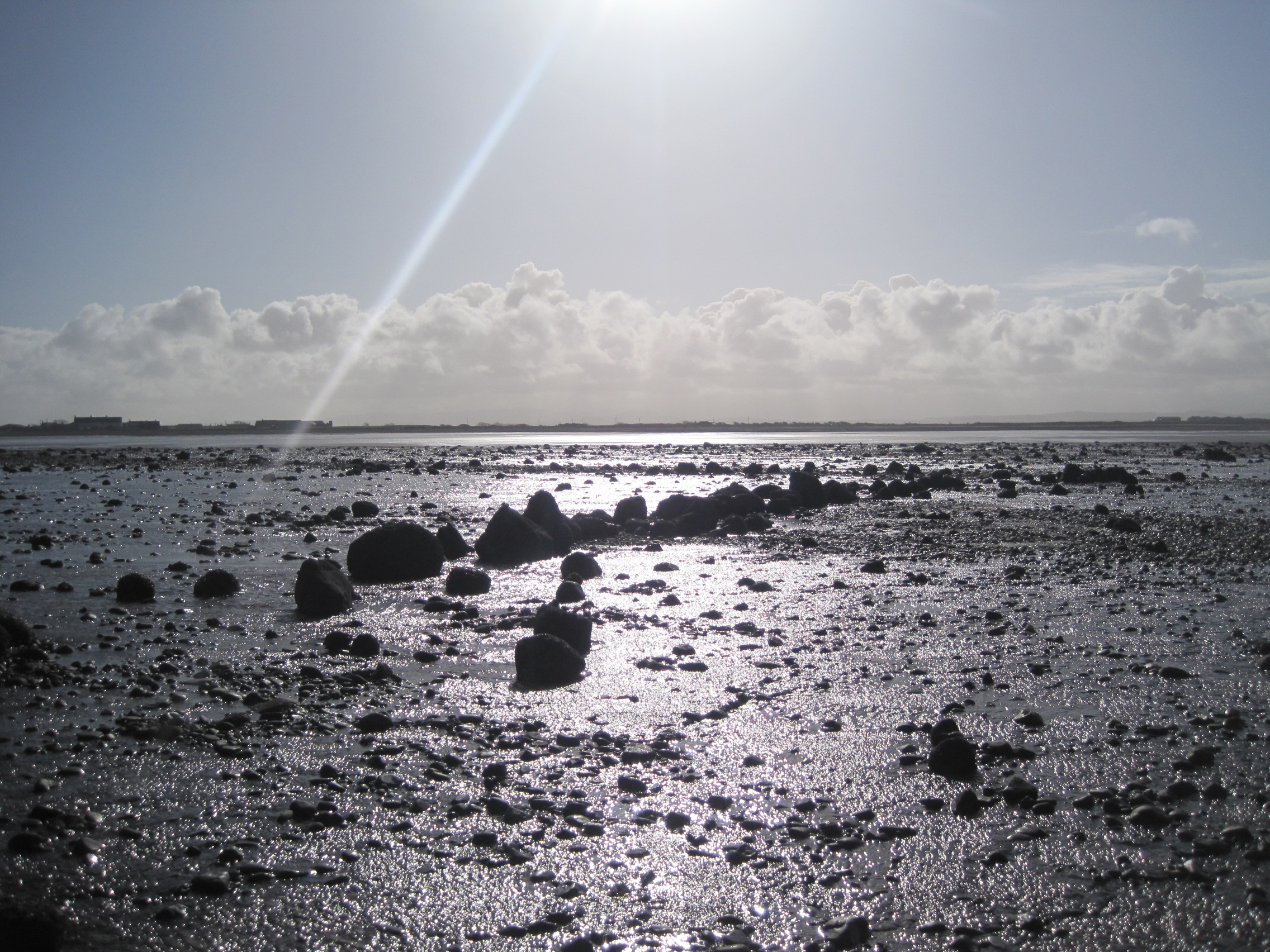 Lines of stones stretch out into the Firth from the Beckfoot and Mawbray sands. When I was looking at the mussel-beds a few years ago with Dr Jane Lancaster (who is now Senior Marine Ecologist with NaturalPower) we puzzled about the lines: where the rows were roughly parallel, perhaps the stones had been cleared to make a safe place to haul up a boat; perhaps they were the remains of fish-traps. Jane sent photos to some archaeological colleagues, who suggested the lines might mark parish boundaries. Another possibility was that they were boundary-markers for collecting cockles or mussels.