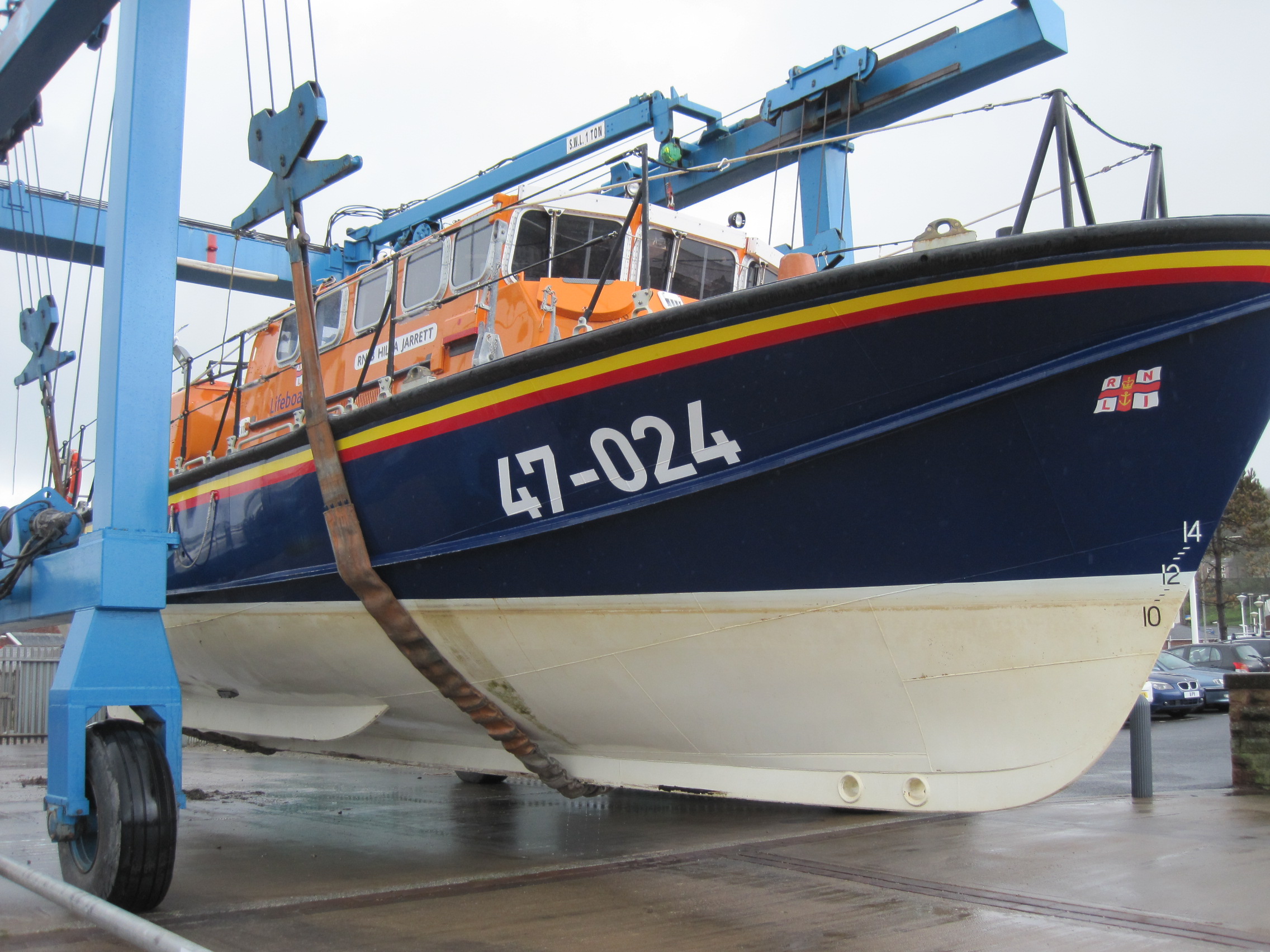 I commented on the easily-recognised and well-loved livery of dark blue, red and yellow, and Bob laughed. “The RNLI wanted to change the colours but there was an outcry. And you see the number on the bow? 47-024 – that’s the length in feet, and she’s number 24 in her class. They wanted to change the feet to metres …”