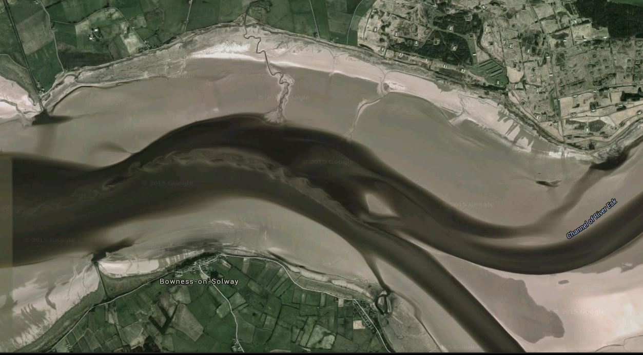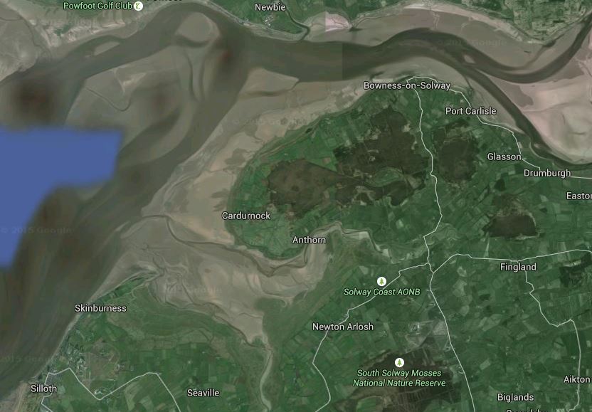 Crossing from Bowness (From Google Earth). At the time of writing, the R Esk also has a channel close to the northern shore