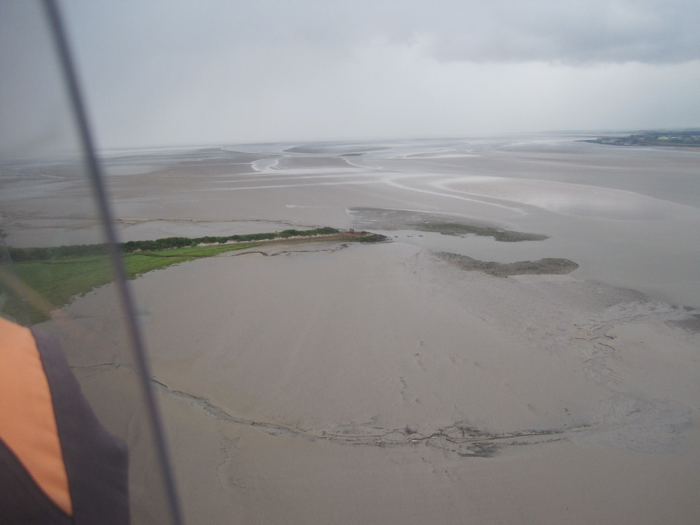 As it turned out, I’d already booked a gyroplane flight with Andrew Lysser, to catch a very low Spring tide, and a few days later we flew over that stretch of the Firth before we had to turn back due to bad weather. The water certainly looked shallow, there were large sandbanks, and I felt rather more confident about a crossing. Mark Messenger and I agreed to make the attempt on the first low tide two days later.