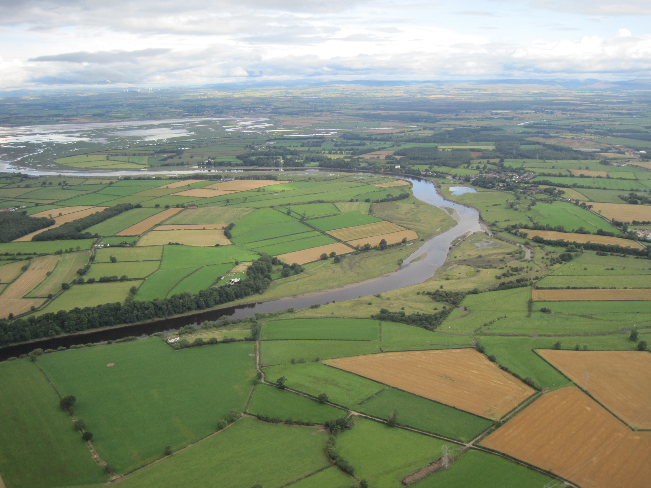 The meandering R Eden, with Rockcliffe marsh beyond. Peatwath was probably near the middle of the upper (in the photo) loop (photo: Ann Lingard)
