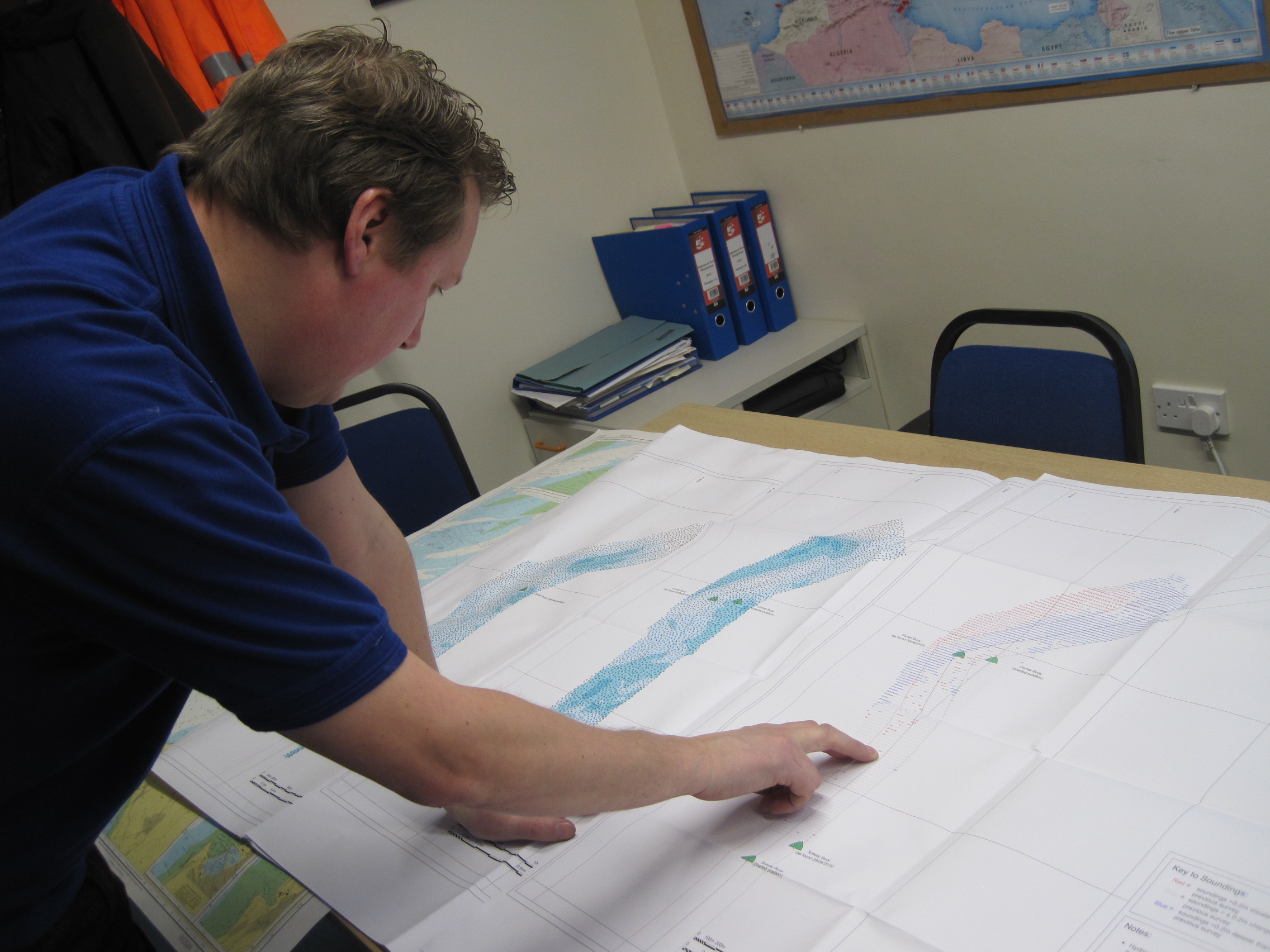 Ed Deeley, Harbour Master, looking at bathymetric surveys of the channel