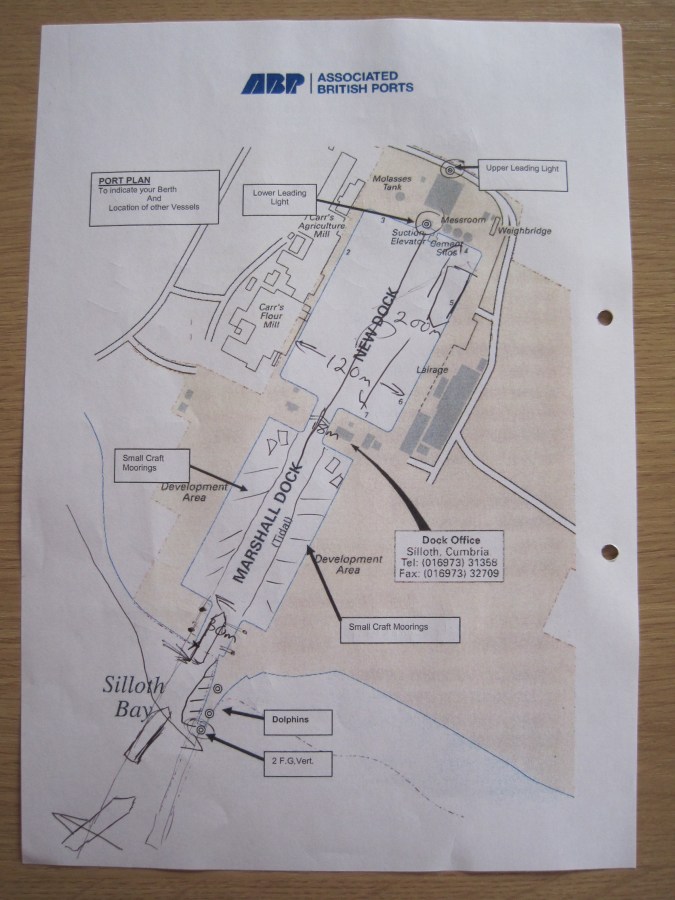 Marked-up Passage Plan for the Port of Silloth, with diagrams to show the passage of the ship