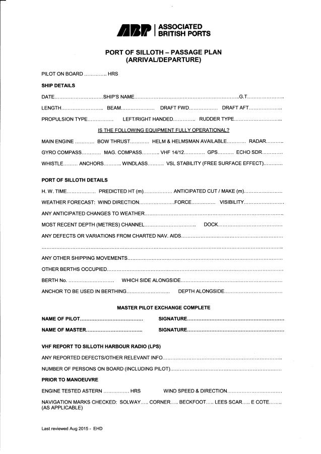 Check list for the Passage Plan