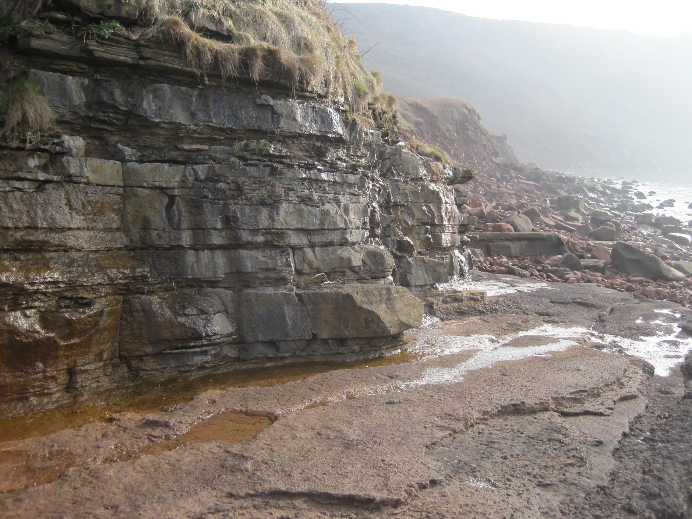 Brockram platform and low dolomitic limestone cliff
