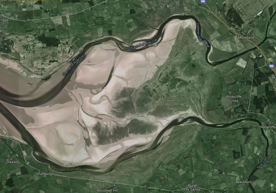 Satellite view of Rockcliffe Marsh, and the Rivers Esk and Eden (from Google)