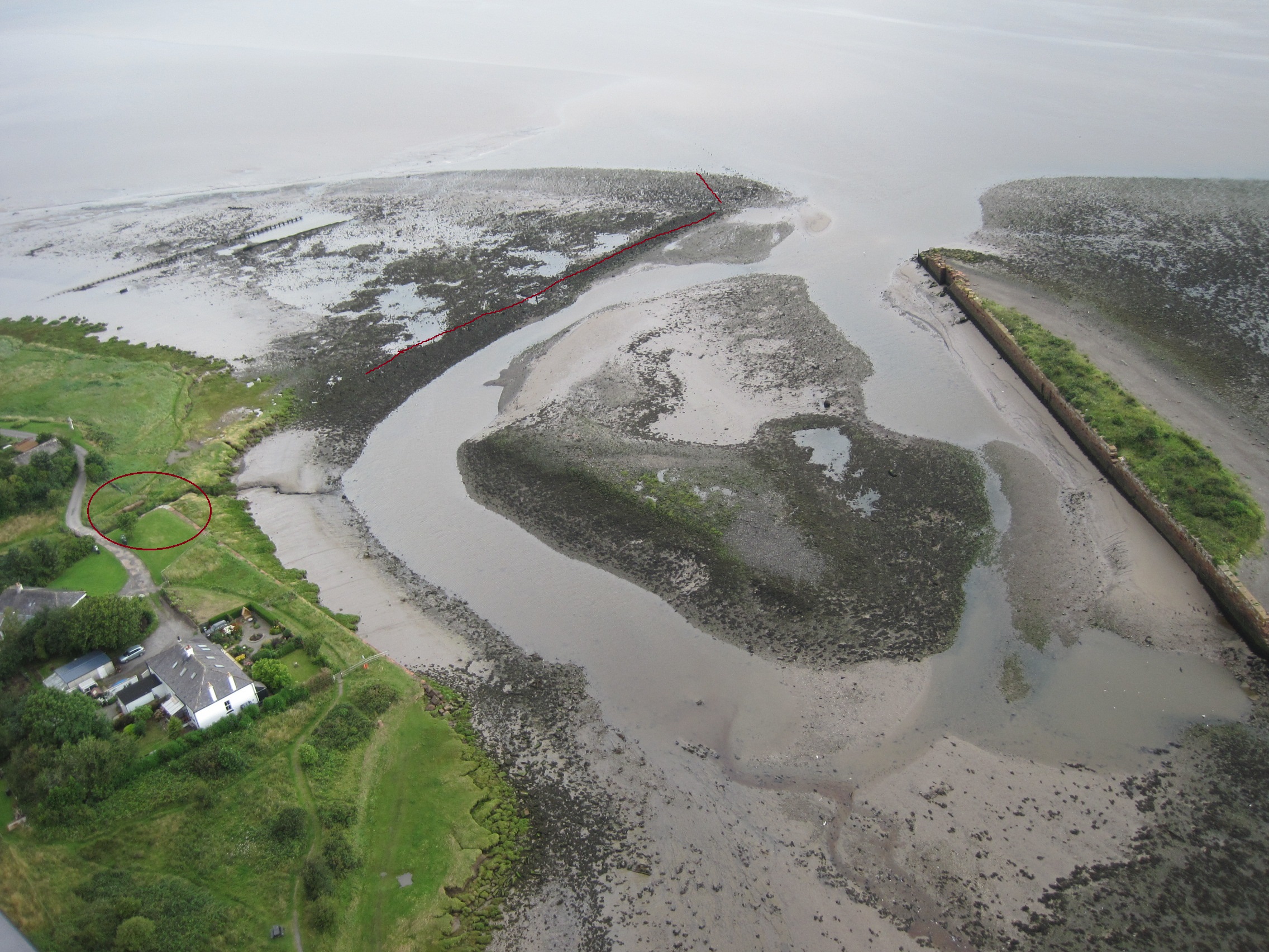 Red line marks steamer pier; oval the position of the locks (photo: Ann Lingard)