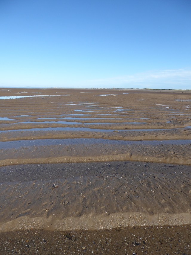 The height of each incursion doesn’t mark a simple water-line along the shore, for there would have been hollows and sandbanks, that either kept out or trapped the water: along the shore today you cross undulating sand-waves, find your way interrupted by water-filled channels, and discover that the former course of a beck across the shore has been changed by newly-banked shingle. Marine débris sinks in the still water, layering its patterns onto the settled sediment.