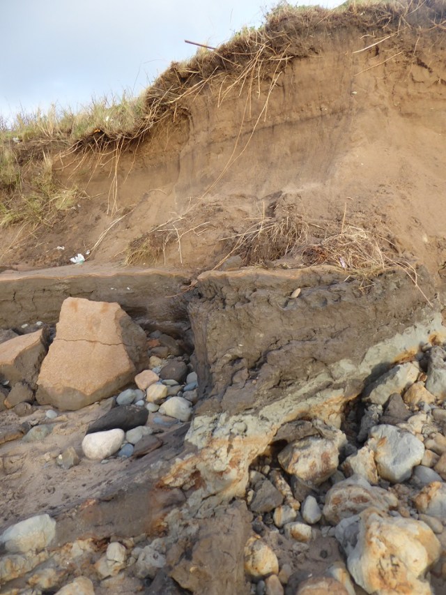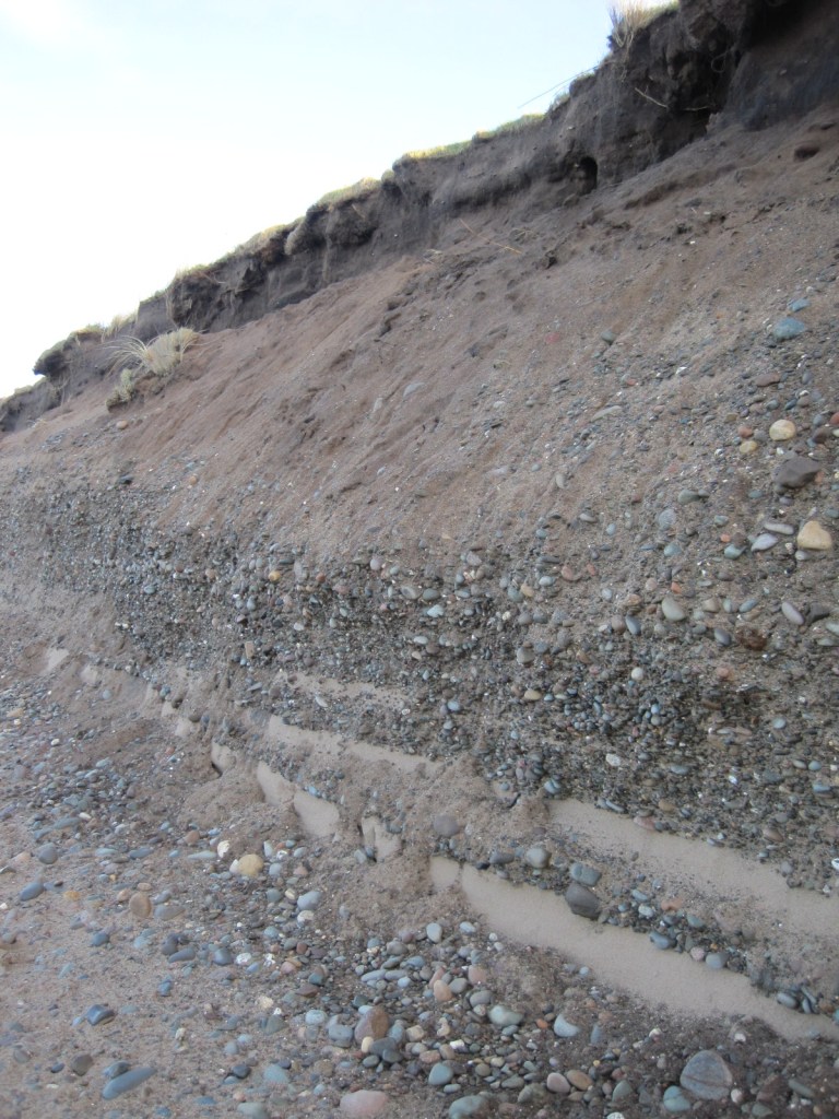 It’s like a detective story, a very cold case, with a complicated time-line. From the time the glaciers melted, about 10,000 years ago, until the present day, the levels of the sea – the Firth – relative to the land, have changed many times. You can see it most obviously where lines of pebbles sandwiched by layers of sand are exposed in the dunes – these are ‘raised beaches’ that show the different levels of the shore over time.