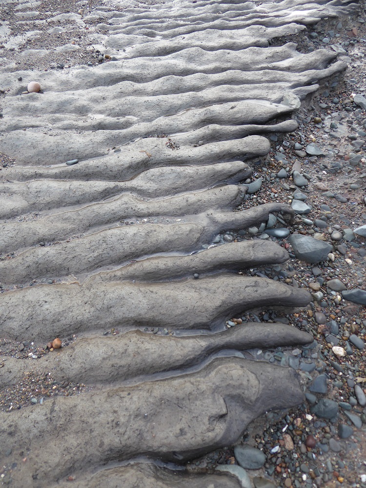 Mudshrimps dig U-shaped tubes of this approximate size; the tubes of mud-dwelling ragworms are more branched. Clay is much denser than the mud where these creatures normally live – but perhaps it was softer and muddier before it was compressed … It’s frustrating not knowing who constructed those shelters, and when.