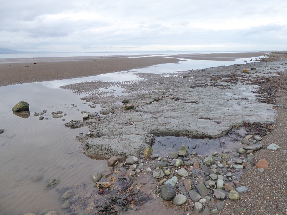 The forest and peat could be seen for more than a decade, but a few years ago during a sequence of winter storms, the peat was thrashed and fragmented by the waves, the wet and fragile wood vanished, and nothing remained visible of the woodland that had stretched across that earlier Solway Plain. But that patch had been just a small area: underneath the new and ever-changing profile of the mid-shore near Beckfoot – where shingle had been swept away, rocky scaurs (relics of glacial deposits) had been exposed, and sand had been piled in sessile waves and tiny ripples – the horizon containing the forest and peat and clay would still be present. It was a comfort to know that this evidence of the formation and changing development of the turbulent Solway Firth was still there – but hidden, from sight and perhaps from memory.