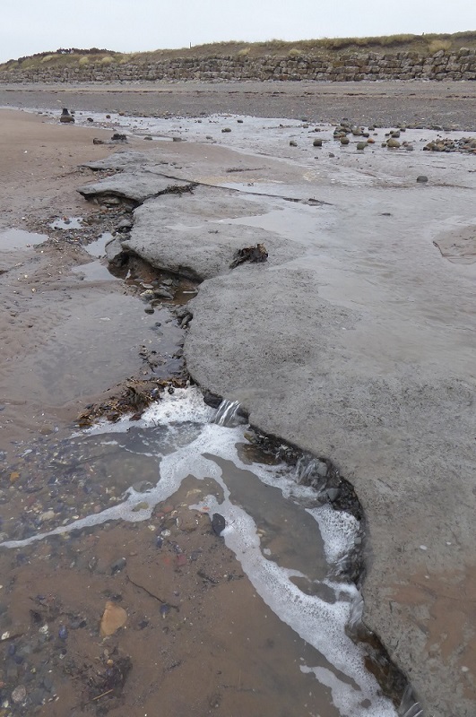 Looking up to watch a curlew come gliding over the dunes, its outspread wings motionless as it let itself be carried by the wind towards the distant water, I saw that, higher up the shore towards the battered dune faces, there were smooth dark plates of … something. Not peat, as I had expected, but sheets of heart-stoppingly slippery, grey clay: the same type of clay that in the earlier exposures had lain beneath the peat layer that had preserved the forest. Had the peat been broken up and washed away, or was this one of those places where salt- or fresh-water had temporarily inundated the peat bog? Perhaps there had been a meeting of sea and river water, where the suspended sediment had flocculated and fallen – or perhaps the sea had broken through a barrier and washed out clay that had been deposited at the bottom of a still, small lake?