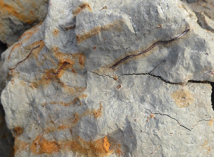 But that is the wrong question, the wrong ‘Kingdom’ – the origin is plant not animal. In places filaments stretch between the broken ends of tubes and it’s clear that the burrowers were roots, and the walls of the tubes have formed around them, the clay hardening and taking up the ferric salts. Some are fine and fragile, others stout and thick-walled.