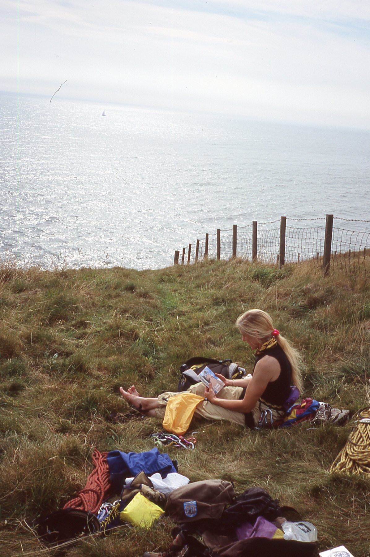 At the top, climbing turns to a graceless scrabble up the lethally steep grass and it is with some relief that you reach the doubtful security of whatever metal or wooden post your leader is tied to. But then you move to safer ground, among the grazing sheep, where you can relax and enjoy the view of the Cumbrian coastline and the northern fells, looking splendid across the Solway Firth.