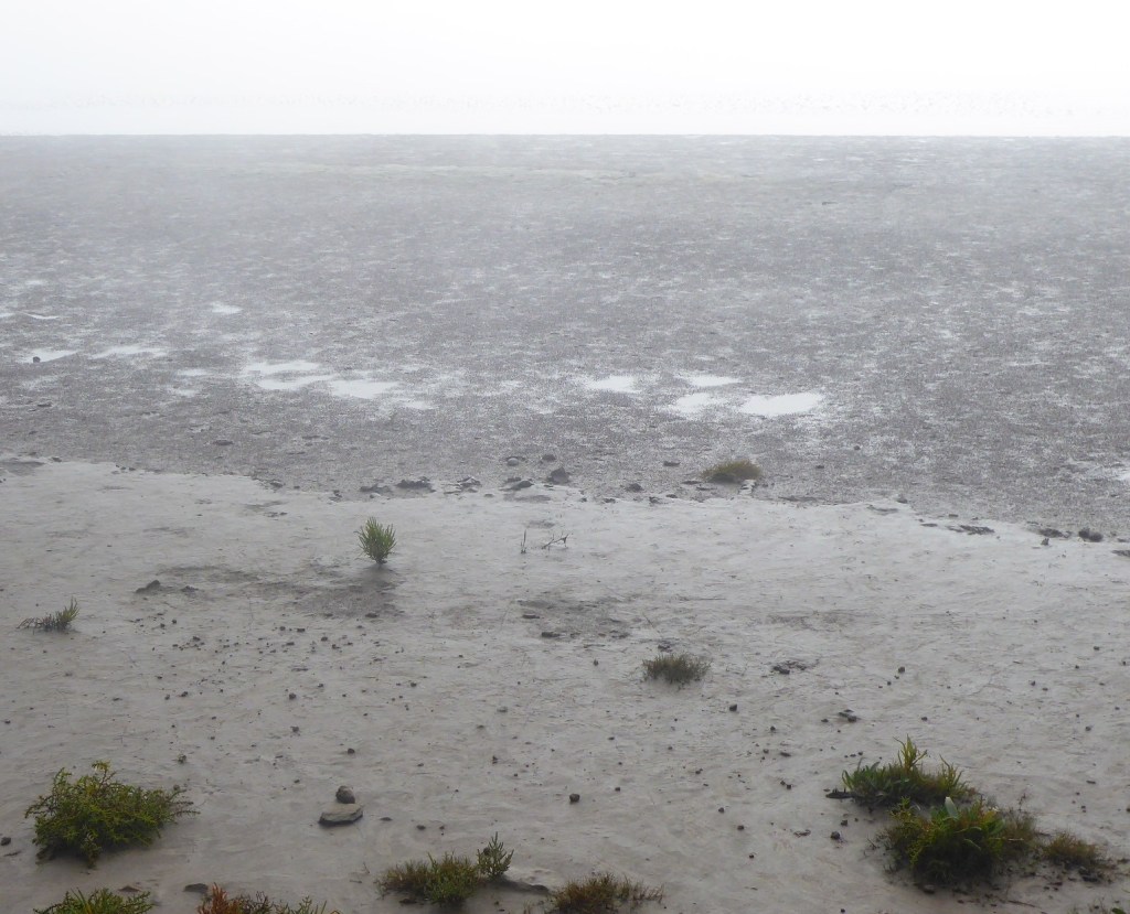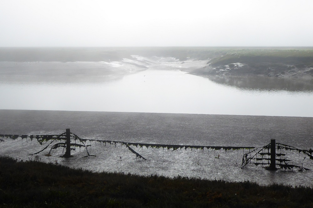 The saltmarsh keeps growing: outwards, making the latest sheep fence irrelevant; upwards, swallowing the fence posts. Its story accretes in layers like the thick pages of an ancient book.