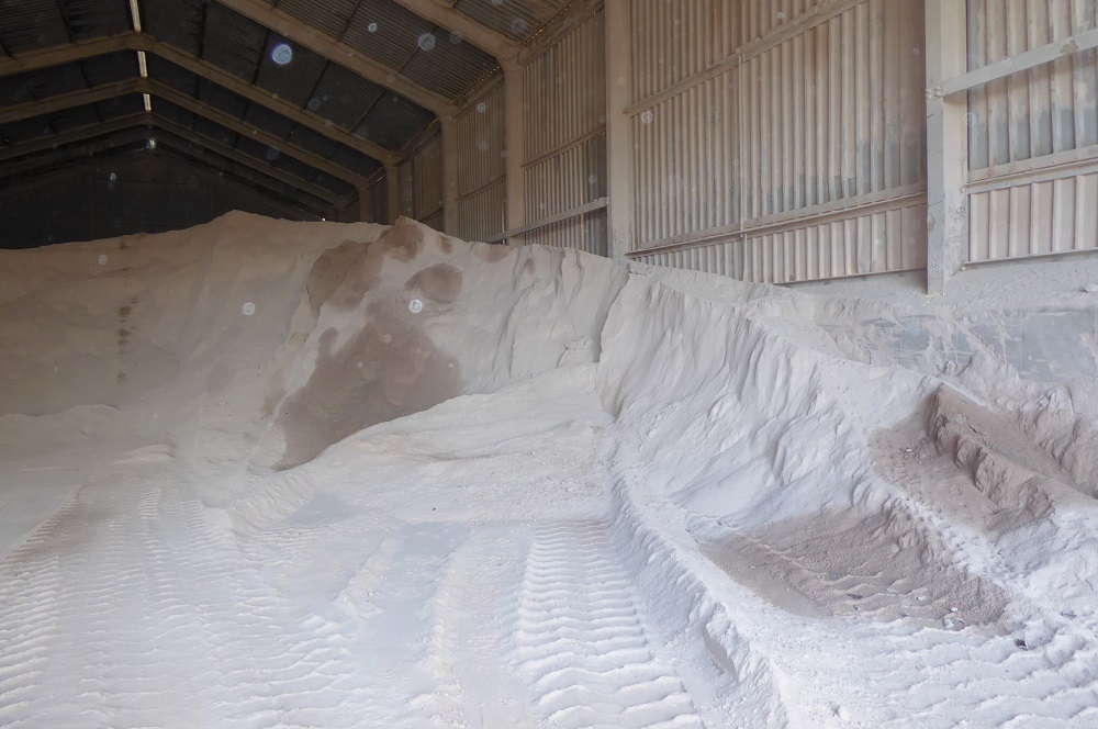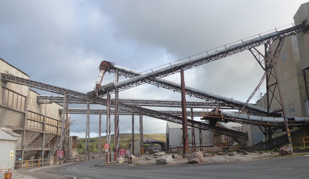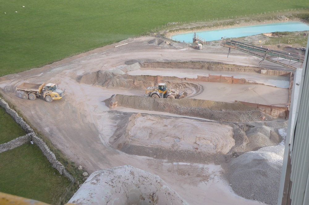 After leaving the kilns, the labs and the control room, we walk back to the offices, past a large open-fronted shed piled with white powder. This is ‘agri-lime’, finely-crushed limestone – not quicklime – for spreading on the fields. Although no longer a lucrative part of the business, production is kept going mainly for the benefit of local farmers.