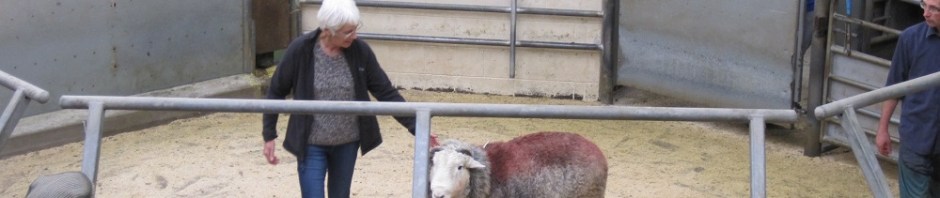 On the first weekend in October the annual ‘Keswick’ Show and Sale of Herdwick sheep is held in Mitchell’s Livestock Mart in Cockermouth. Our tup ‘Bonzo’ had been accepted for official registration in the breed’s Stock Book: his appearance – his grey fleece, and hairy white face, testicles and legs – and therefore presumably his genes, were judged acceptable for sale, and he was being primped for the show. A friend who is a well-known Herdwick breeder came round with a tub of raddle and set to, rubbing the greasy red mixture into the fleece on Bonzo’s back. But up at the mart, surrounded by pens of feisty red-dressed tups who were clashing heads at every opportunity, our tup seemed unimpressed and lay down in his allotted pen, looking bored. When his turn came to show off his masculinity in the ring, his laid-back attitude even prompted some laughter. He did not sell.