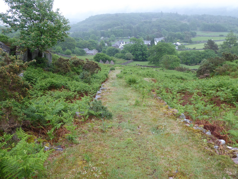A straight and narrow track stretches up the fellside behind the building, raised on a base of stones – this was the tramway, an inclined plane, down which the ore-laden wagons would have travelled to the station and been pulled up, empty, to the top.