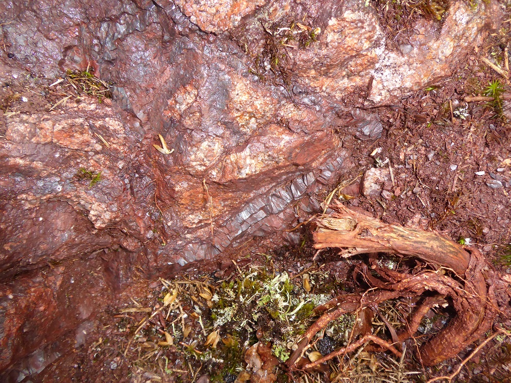 So, those fluids crept and trickled their way into the permeable sandstone, and through to the limestones that originated from the skeletons of marine organisms in earlier warm seas, and into the joints and faults in the hard pink granite – eventually becoming a valuable commodity as humans discovered the usefulness of iron.