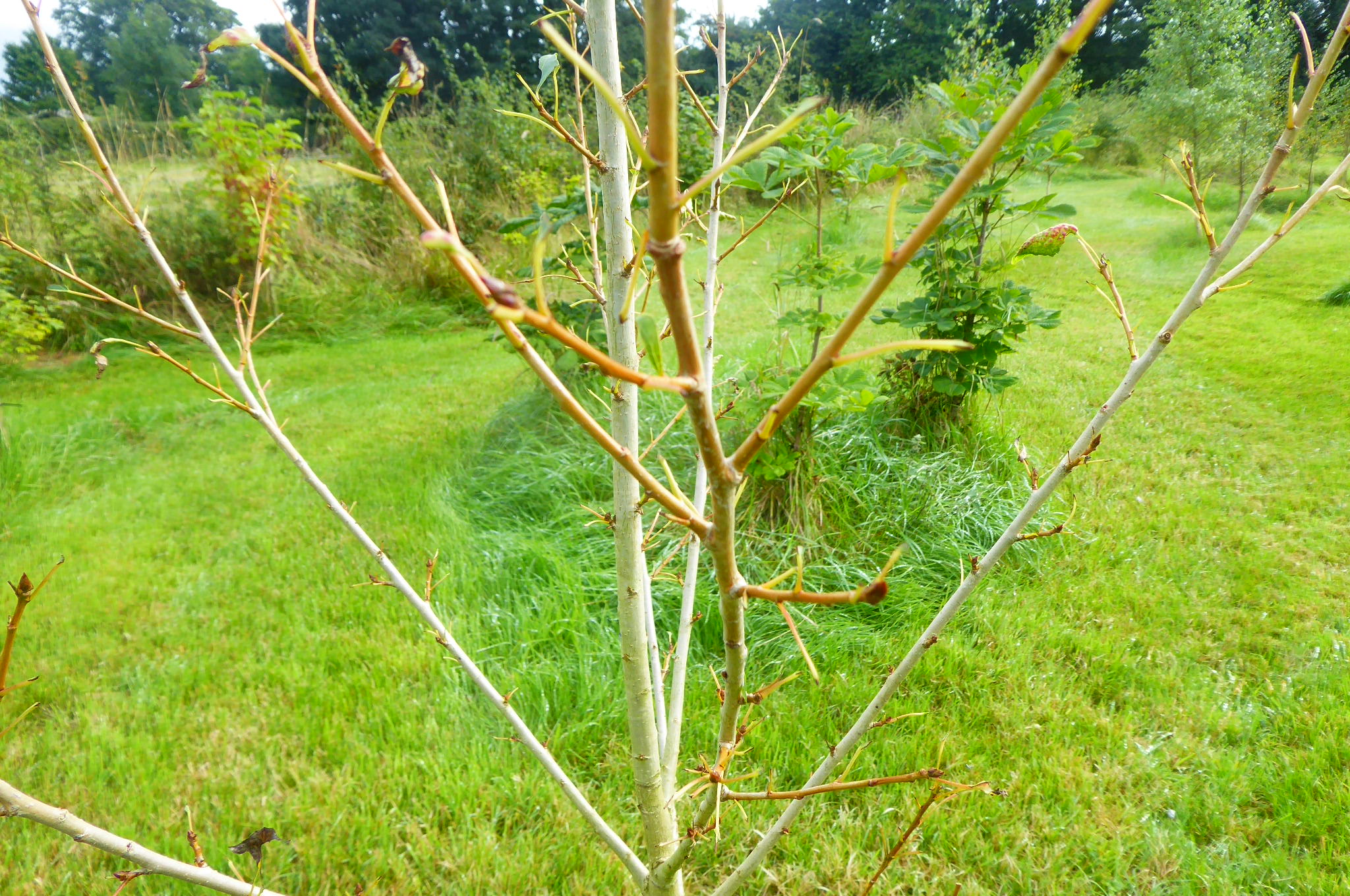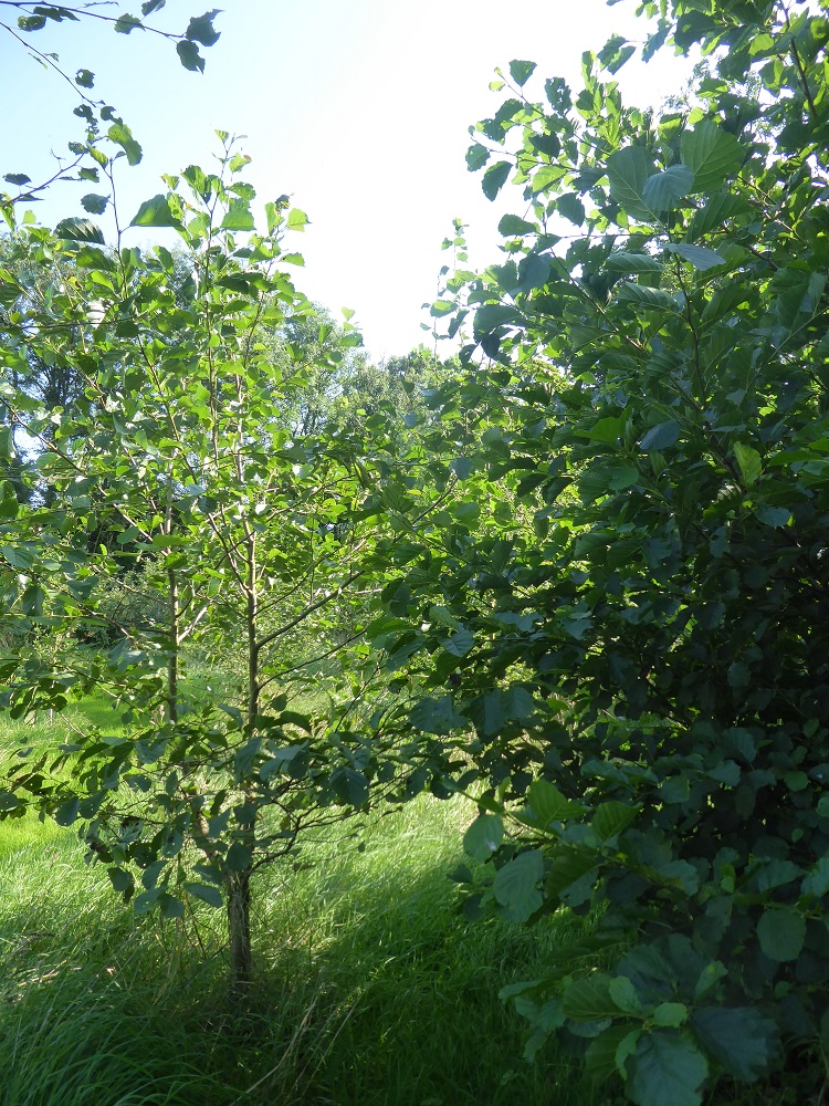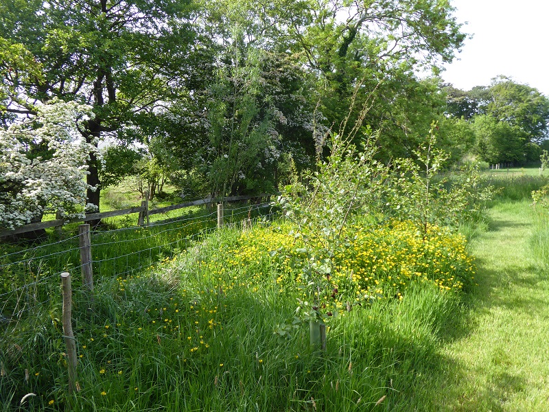 The trees have now had four growing seasons and the woodland, the hawthorn hedge and the thickets are really taking shape. Some of the alders in the damp area are sturdy-trunked trees 3-4 metres high, and some of the birches are approaching 3 metres; a couple of the guelder roses and rowans had berries this year. They’re ‘proper trees’!