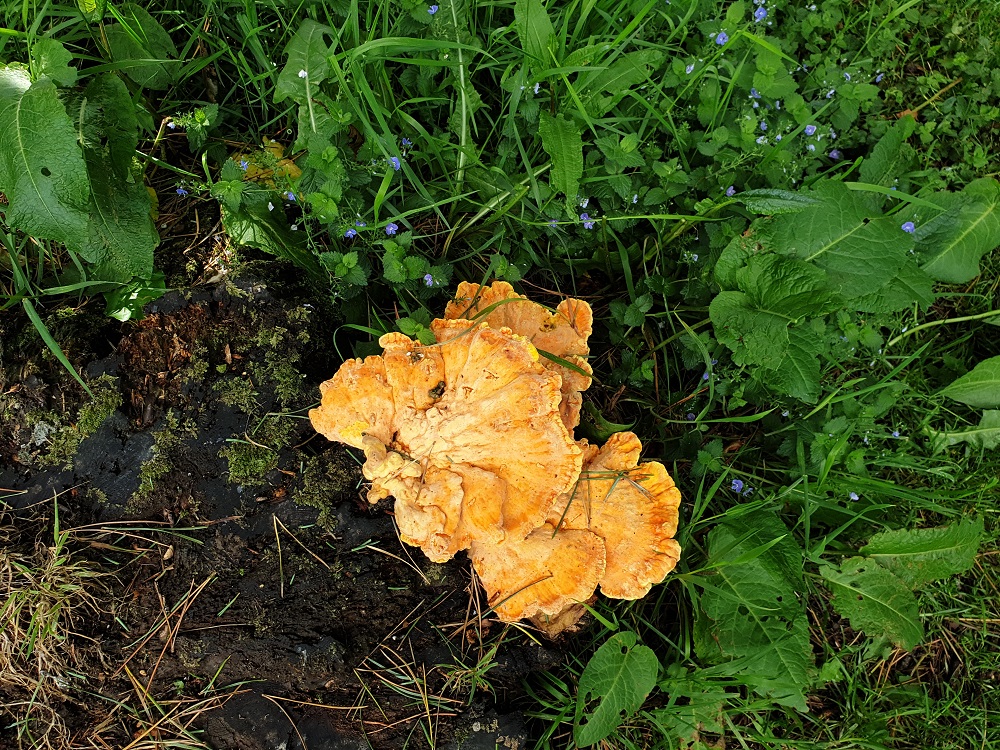 But the trees and ground require ‘managing’ at this stage. We’ve removed the tree guards and checked the supporting stakes this year; trimmed a few lower branches where necessary; cut back some dense thatch of tough grasses where it was suffocating aconites and later, yellow rattle. The worst task, which needs to be spread over several days, not just for physical but also psychological reasons (‘losing the will to live’ is the phrase that churns around my mind after several hours of blister-raising raking), is the autumn strimming of the grass and then raking it into piles and removing it, as we attempt to impoverish the soil so that the diversity of wild flowers will increase. Last year we strimmed and scarified patches, and stamped in hundreds of yellow rattle seeds gathered in a friend’s wildflower meadow. This year 14 yellow rattle plants appeared … But despite that unimpressive result, an increasing number of other flowering species are establishing themselves throughout the former field: cuckoo flowers are proliferating (and have been visited by orange-tip butterflies); there are patches of yellow vetch, chickweed, red campion; there is crows-foot along the fence near the beck, cow-parsley and yarrow.