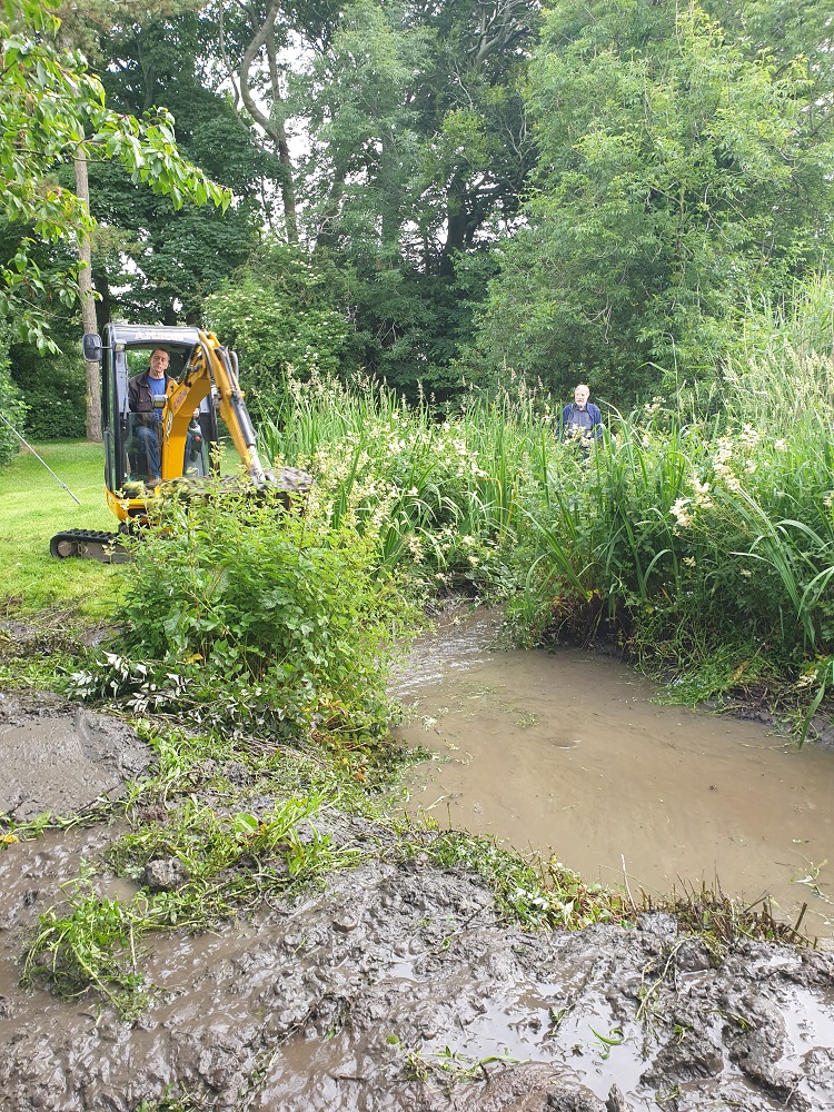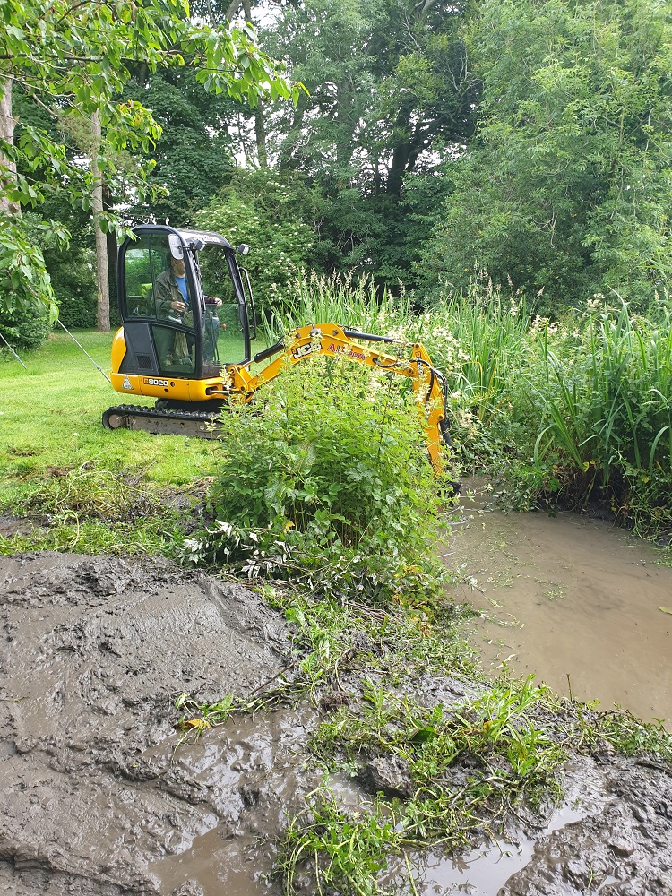In October we took the drastic step of asking our friend with a mini-digger to dredge it. He scooped the mud and weed onto the banks so that creatures could crawl out, although we knew that hundreds of snails, flatworms, gammarids, and millions of micro-organisms, would lose their lives. (Even writing that is shocking.) Astonishingly, an eel squirmed out of the mud. How did the eels get here? Several years ago, a neighbour watched a buzzard in our field, struggling to eat an active eel. (And when we first arrived, 20-odd years ago, there were small trout in our beck – again, how they got there, since there is a 1-metre-high barrier in the beck at the boundary, is a mystery. The trout disappeared after a period of drought, and perhaps also due to the occasional activity of a heron.)