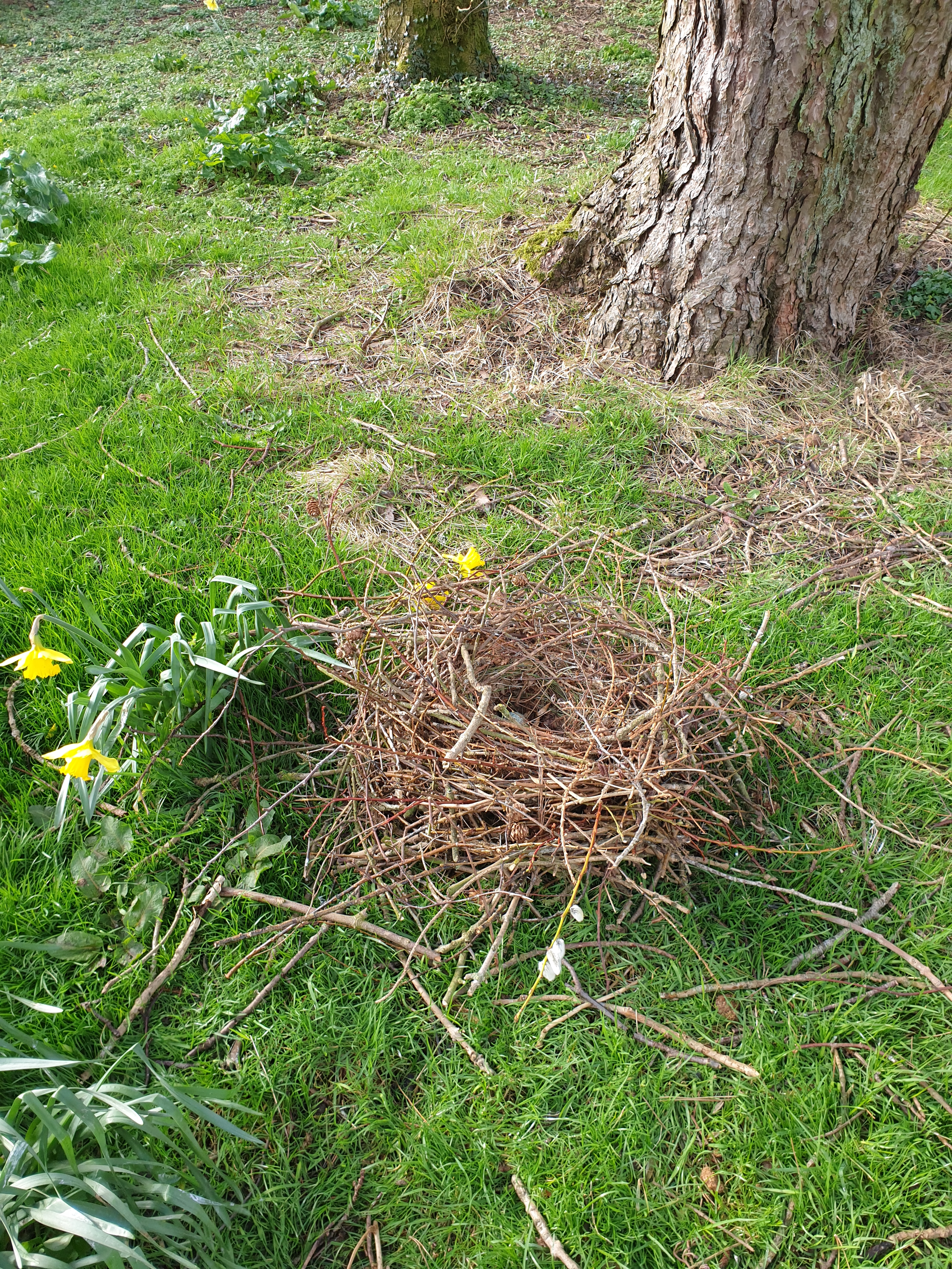 In the old wood, rainwater dripping from the pines and chestnuts has made a hard pan under some of the trees; in the autumn we pile fallen leaves on these areas. Last year we cut down two ashes that succumbed to die-back, letting in more light and planting hazel and alder buckthorn as an understorey. The enlarging thicket of wild raspberries fed us and the blackbirds, even into November. A rook’s nest fell from the rookery early in the year, landing intact, with an unbroken egg inside. It was vast and intricately constructed, not at all the tangle of twigs that is seen from below. A former colleague of mine at Glasgow University Zoology Department, and the author of ‘Animal Architecture’, Prof Mike Hansell, used to take sacks of twigs into the lab and encourage the ethology students to try to build a nest.