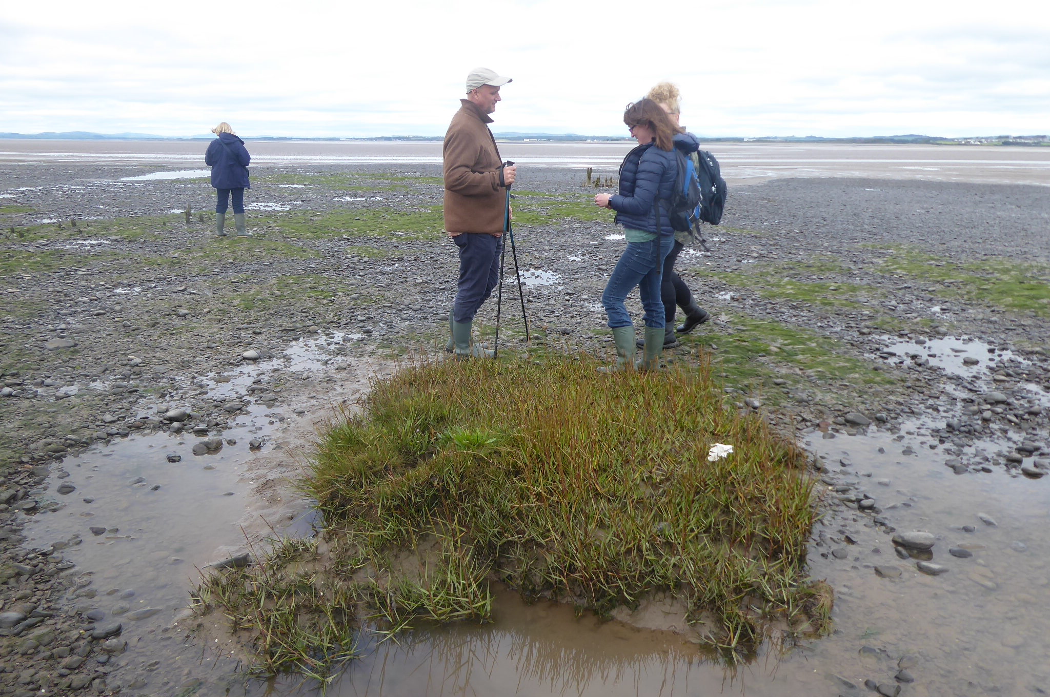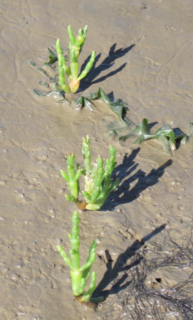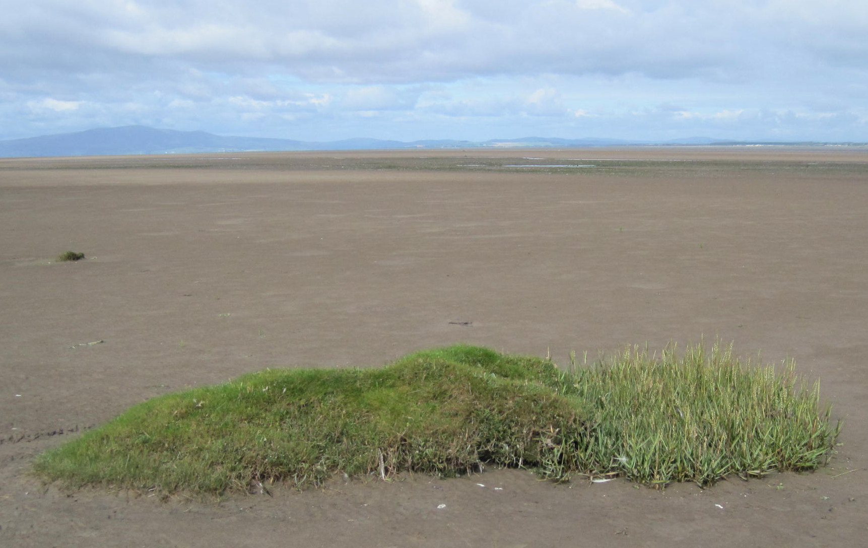 A ‘classic’ saltmarsh has three tiers, formed as it grows outwards (accretes) and upwards, gathering and trapping and compacting sediment. The new edge, next to the estuary, is stabilised by the growth of pioneer plants like samphire, Salicornia, and the ‘invasive non-native’ grass, Spartina (it originally came from America) which trap sediment between their roots and in the ‘stationary layer’ of water at their base.