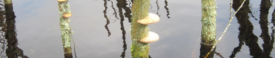 For almost ten years I have taken photos of this very photogenic and intriguing ‘pool of the drowned birches’, watching the process of their decay. My record has not been systematic, and I have not always stood at the exact same spot. But the following photos show the loss of twigginess; the bracket fungi die and fall off, the trunks become rotten and stubby. Sphagnum mosses start to invade the wetness. In the dry periods, grasses grow. Reflections of the sky and silvery trunks disappear. The colour palette changes. What is the desired outcome? Not peatbog, but a different dwelling place, part of the Reserve’s patchwork of communities.