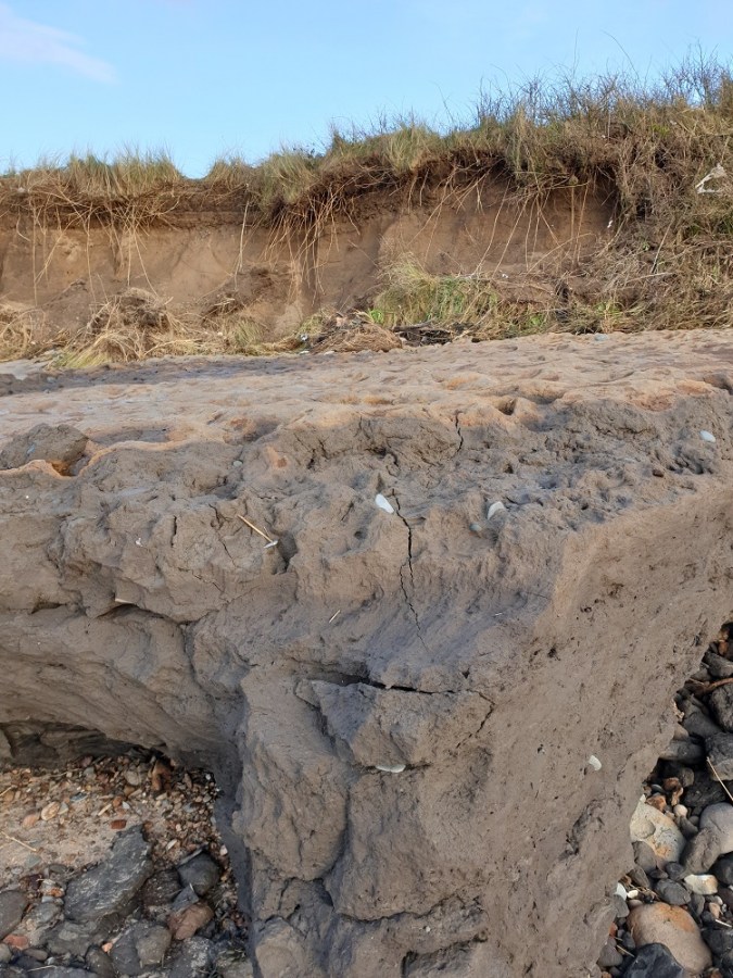 Peat overlaid with a thin skin of hard sand