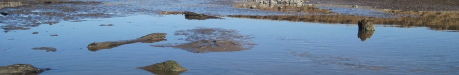 Vanished forest: shingle, sand-waves and a distant rocky scaur