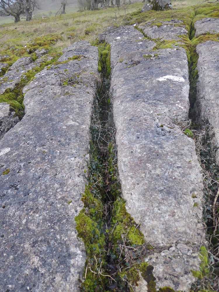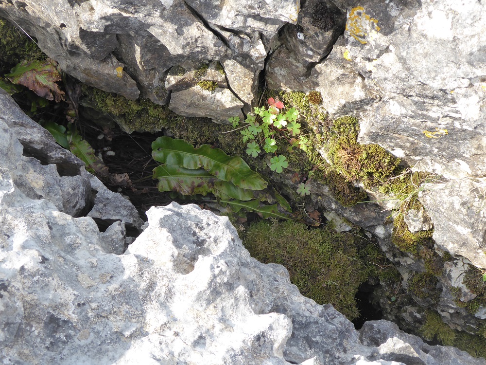 Grikesgrikes showing lifeHart’s Tongue fern and Herb RobertArea 3 (the southern section of Clints)