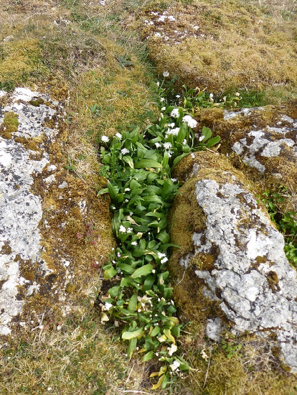 The hawthorns are in leaf but the ashes, as always, are slow. The wild garlic fills the grikes with clusters of stars.