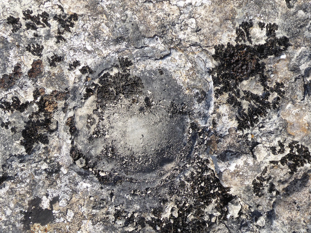 Large plates of Aspicilia calcarea brightening up the stoneAspicilia calcarea – likes bright light and limestoneAcrocordia conoideaBeautiful little Squamarina cartaliginea on the edge of clintLichens in Area 1