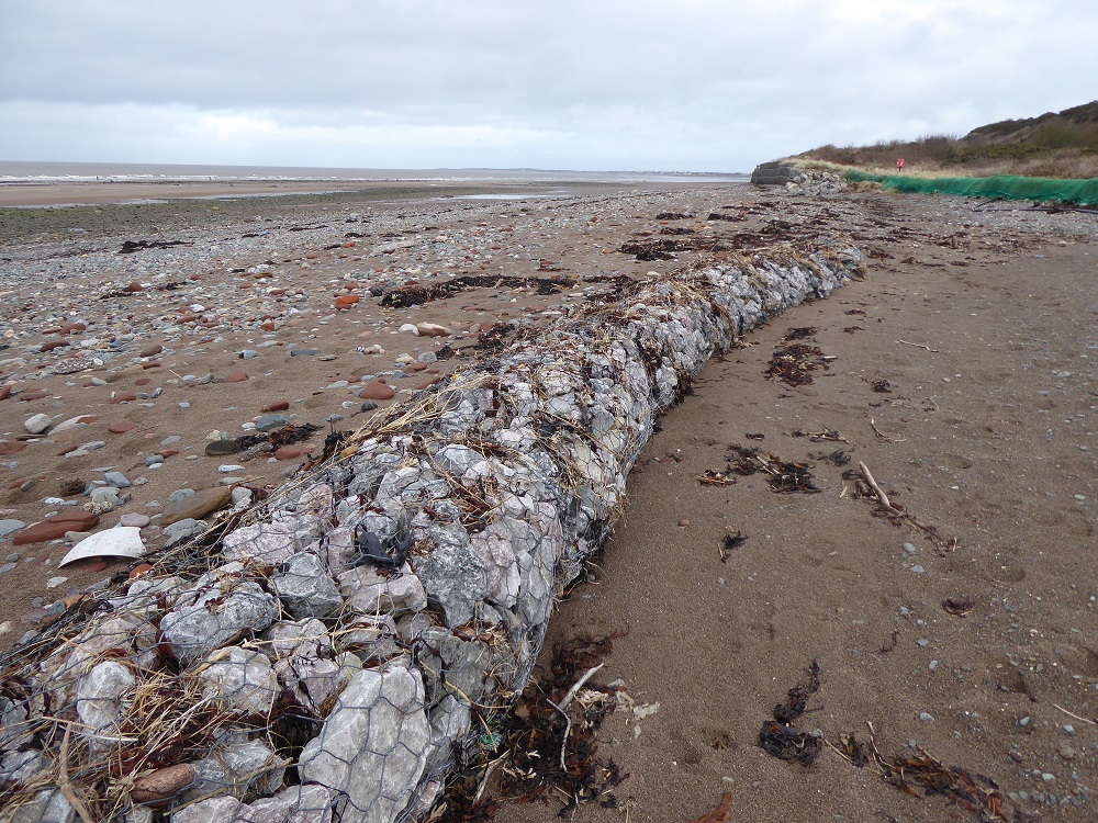 Away from the wave-tank, bunds of gabions and rock armour have been constructed along vulnerable stretches of the Cumbrian Solway coast from Whitehaven to Allonby Bay, to Skinburness and Grune Point.