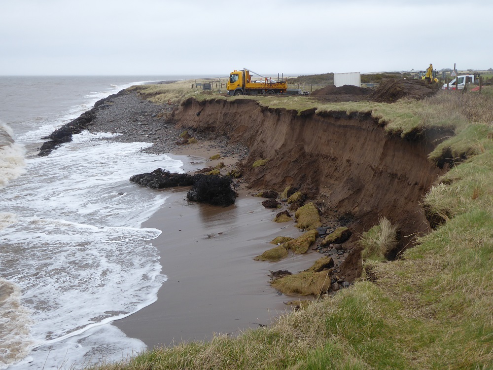 During high spring tides and stormy weather, the brown, sediment-laden waves pound against the margins, shifting the sand, gnawing at the mudflats and pummelling the edges of the saltmarshes. Year by year – and more so now that ‘extreme’ weather events are occurring – the border between land and not-land is shifting. The coast road from Maryport to Silloth is continually being threatened, and is sometimes closed to be cleared of pebbles and seaweed or – in the worst cases – have its seaward side shored up. The loss of the coast road is a major inconvenience; the potential loss of houses and shops a disaster for human lives and livelihoods. So how can they be protected from the force and height of the water?