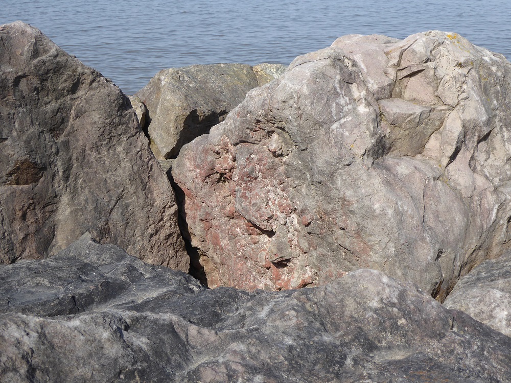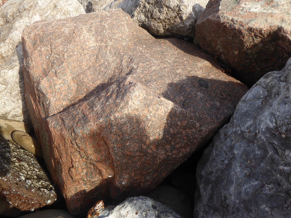 Further along the shore, there is a sudden sharp demarcation where the limestone blocks have been replaced by boulders of pink Shap granite, studded with large shining crystals; perhaps there was a BOGOF on a few truckloads of the stone.