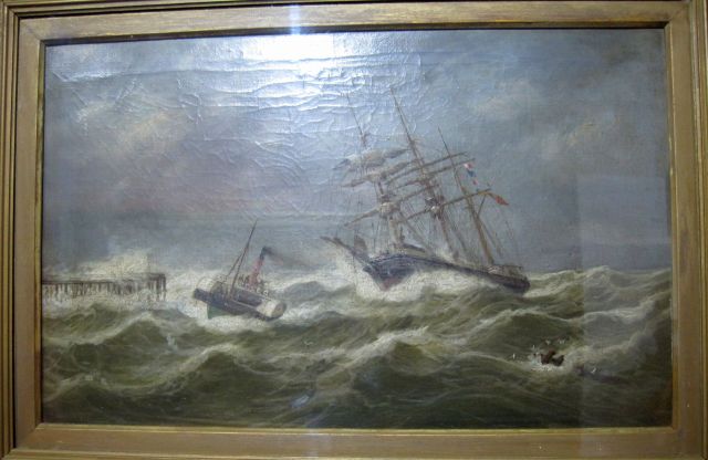 Steam tug Florence towing barque Gimello into Maryport in a storm, 1883. William Mitchell