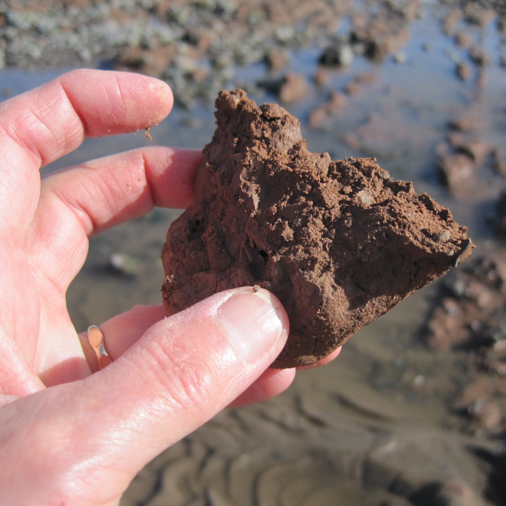 The sediment deposition affects the creeks and pool formation too. In the café, Bart got out the PlayDough, and fashioned a blue creek in a purple Marsh to illustrate what happens. When an incoming tide overtops the banks and spills onto the Marsh, the vegetation traps sediment close to the creek, so that levées gradually form along the banks. As the tide drops, the water on the Marsh cannot escape and forms ephemeral pools, stretches of open water, which slowly decrease by evaporation.